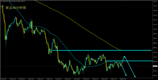黄金1867下空,保护1875,目标1855-1840;