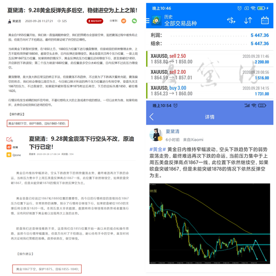 周一黄金日内延续震荡回修,下方虽再度刺破1850,但1848也依然守住未破。黄金开盘小反弹后迅速走低,黛清即刻通知实盘学员1864现价空单进场,在1957手动止盈离场,周初第一单,稳健第一。欧盘行情再次反弹再次给到我们做空的机会。黛清通知学员在1858位置进场空单,并给到止盈位1850,行情如期到达。美盘看了一波反弹,黛清通知学员1854进场多单,止盈位给到1860。坐收盈利即可。学会合理分配和计划人生。不要盲目的预判自己的实力和路途的艰辛,任何时候,都要做好防备。