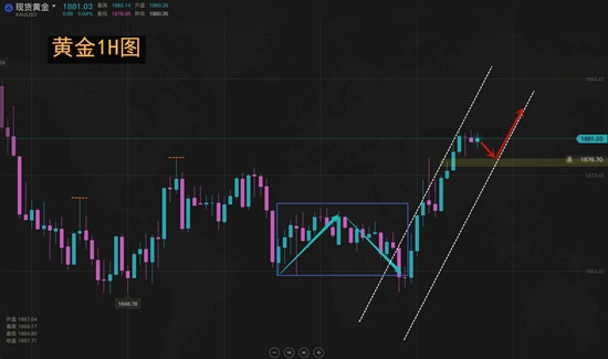 昨天行情再次测试1848位置反弹,四小时级别形成双底,在美盘中已经详细分析讲解过了,我们上周包括周评一直都给的是1848-1850布局多单,现在的行情是震荡筑底,上方重点压制就在1890位置,只要突破此位置了,黄金四小时W双底就突破了颈线压制,后市继续看涨到1905位置。突破1880后,回踩1875附近继续做多,目标看1895-1905位置。
