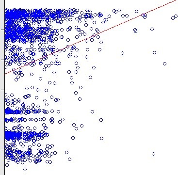 现在的问题是,我本想散点加条回归线说明他不线性递增的,结果变成了就是线性递增了,我是不是 不该做那条回归线,然后跟他们说 从图形看就是不线性递增的啊!