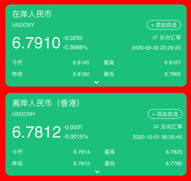 离岸人民币兑美元收复6.80关口,日内涨逾200点,刷新9月23日以来新高。