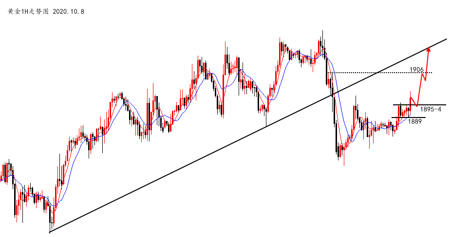 既然,失业金利多,也突破了前一日高点,那么美盘就顺势做多一次,下方重点关注欧盘低点1889,操作上建议1895-4直接多,止损1888,目标1906或上方!