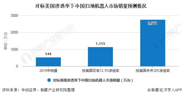目前我国扫地机器人行业渗透率相对较低,假设扫地机器人产品在城镇家庭中率先普及(即以2.8亿户城镇家庭为基数),按照美国市场目前的渗透率(12.5%)进行计算,我国扫地机器人行业年均销量则有望达1155万台(假设3年更新周期),若按照美国市场未来可能达到的渗透率来看(30%),我国扫地机器人行业年均销量有望达2771万台。